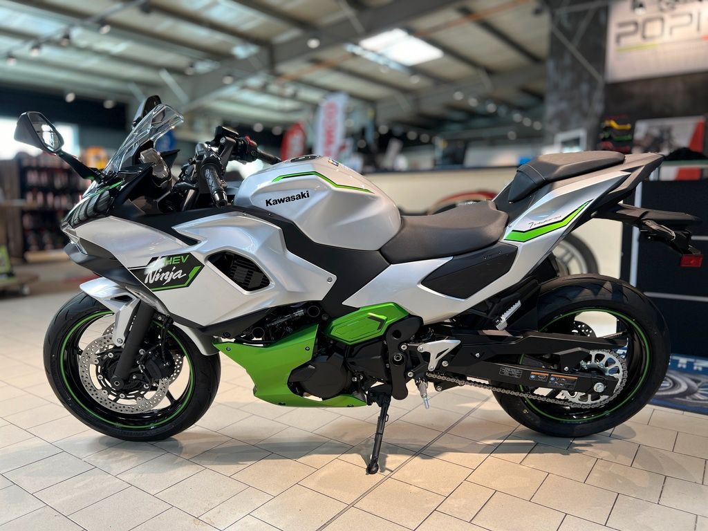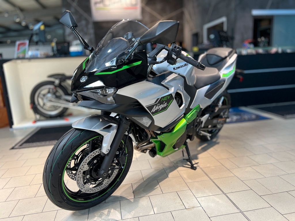 Das weltweit erste starke Hybrid-Motorrad bietet dem Fahrer eine Reihe neuer Fahrerlebnisse: ein Mittelklasse-Paket mit der sofortigen Beschleunigung eines Supersportlers der 1'000-ccm-Klasse aus dem Stand (mit E-Boost), einen Kraftstoffverbrauch auf dem Niveau der 250-ccm-Klasse und sportliches Fahren per Knopfdruck. Mit drei verschiedenen Fahrmodi, von denen jeder einen eigenen Fahrcharakter bietet, und zahlreichen innovativen Funktionen, die der Fahrer erkunden kann, verändert die Ninja 7 Hybrid wirklich das Spiel und läutet eine neue Ära des Fahrerlebnisses ein.Popko das Motorradhaus, ihr Motorradhändler für Braunschweig und Umgebung. Bei Fragen einfach anrufen oder mailen. Wir übernehmen keine Haftung für Irrtümer & Rechtschreibfehler. Besichtigung jederzeit nach Absprache möglich. Gerne unterbreiten wir Ihnen ein individuelles Finanzierungsangebot über die Honda Bank GmbH, Consors Finanz oder Santander.